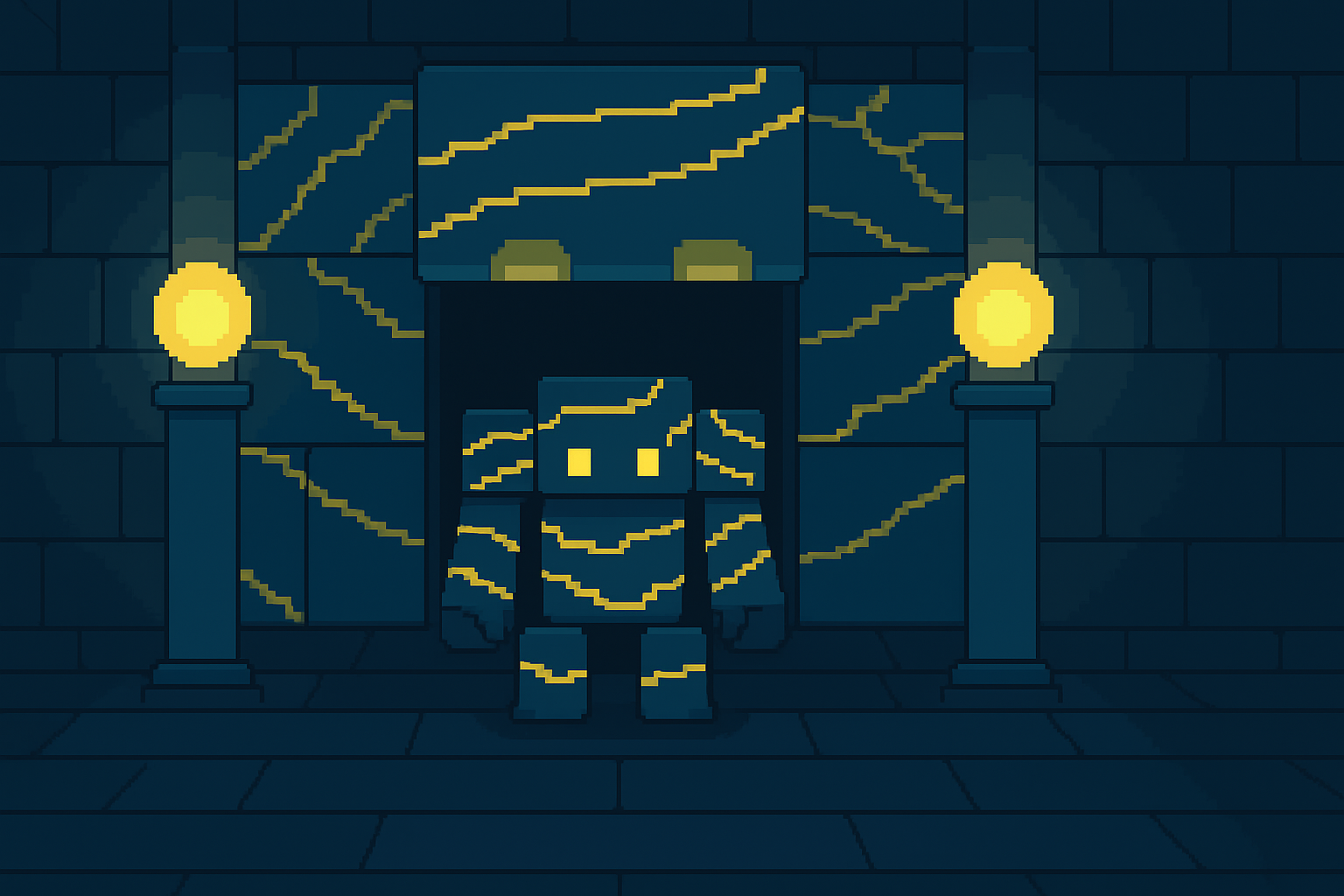 In this game, the player controls an electric Golem, a dungeon boss, who faces an enemy that gets stronger with each defeat.